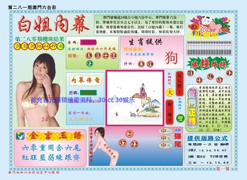 283期《白姐九肖》 综合九肖♘:鼠龙猪鸡猴马蛇兔虎 综合七肖♘:鼠龙猪鸡猴马蛇 综合五肖♘:鼠龙猪鸡猴 主攻特码♘:30.42.14.26.31.43.33.45.10.34 ![]() |